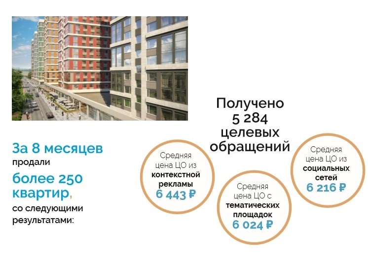 Итого, благодаря грамотно настроенной рекламной кампании и эффективной аналитике, за 8 месяцев было продано более 250 квартир.