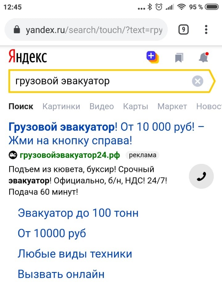 Настроены рекламные объявления в Google только на показ телефонного номера + объявления с максимальным исключением компьютеров из выдачи и текстов, призывающим кликать на значок телефона, что бы шел именно звонок, в обход сайта для Яндекса.